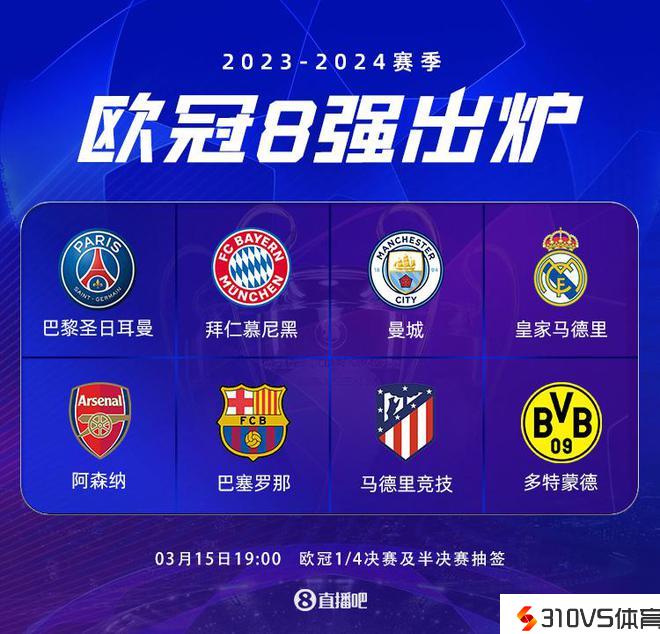 巴黎、拜仁、皇马、曼城、巴萨、阿森纳、马竞、多特进入欧冠8强,1/4决赛抽签今晚停止。