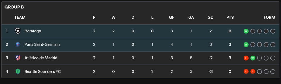 1、此役巴黎圣日耳曼不敌对手,两轮战绩1胜1负积3分,目前位列小组第二名。巴黎首轮4球大胜马竞,因而仍掌握晋级主动权,末轮击败西雅图海湾人队可确保晋级。