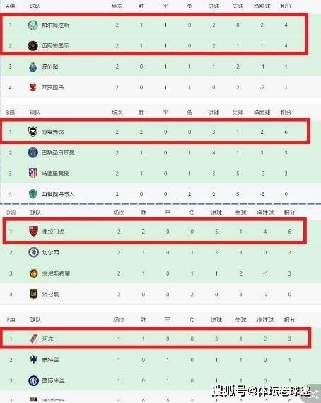 在世俱杯小组各小组积分榜上,南美洲球队也是强势处于领跑地位,其中还包括弗拉门戈提前锁定小组第一出线。