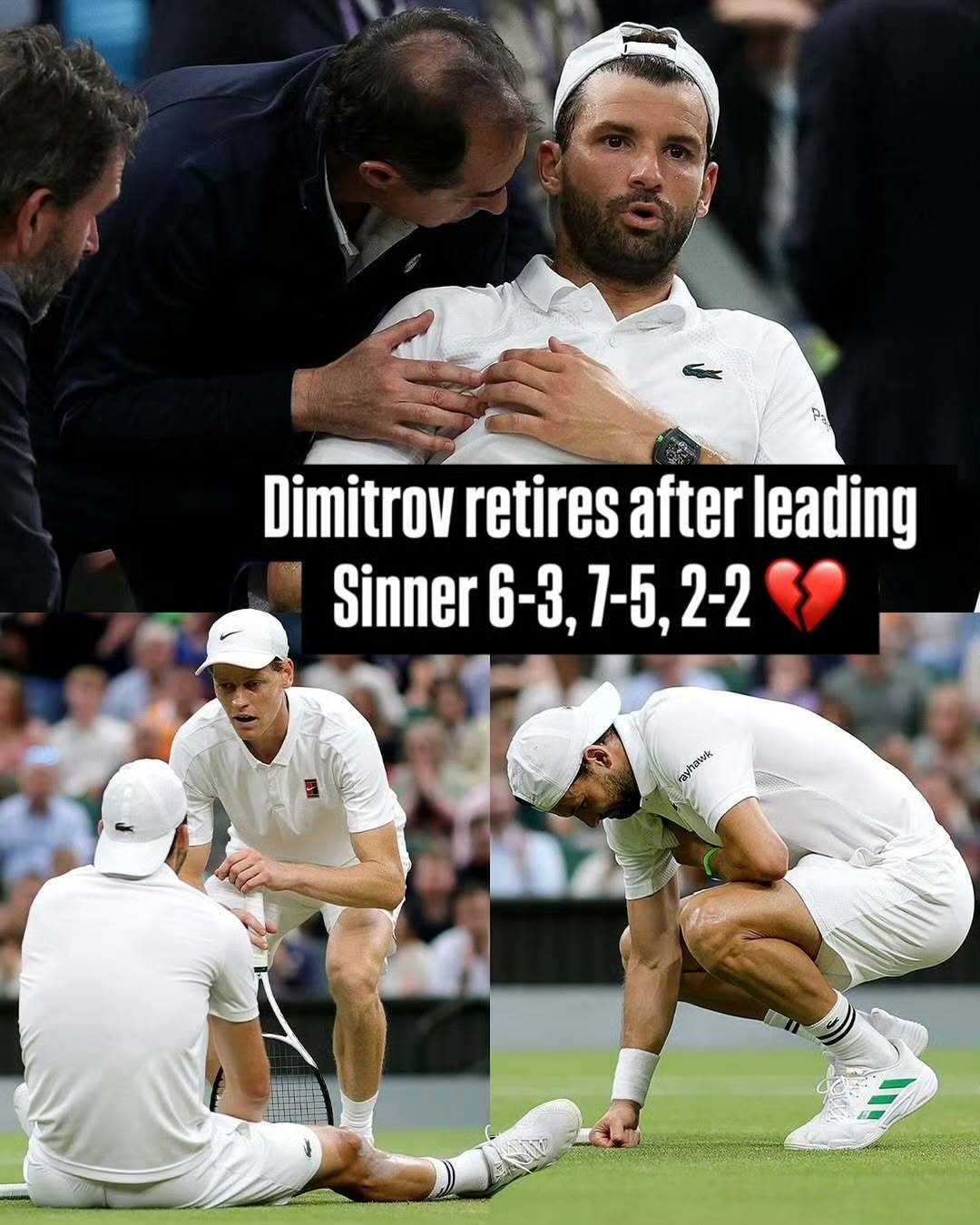 从2024温网到2025温网,迪米特洛夫已经连续五站大满贯因伤退赛: