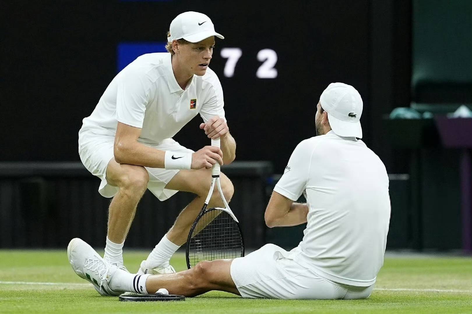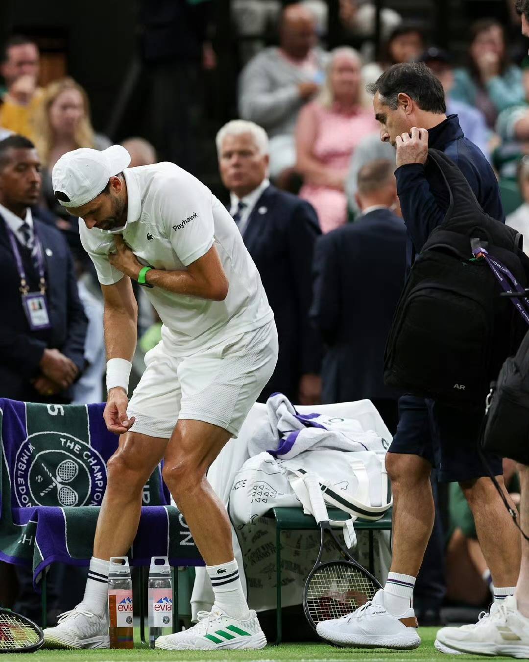 2024温网第四轮 vs 梅德维德夫,滑倒扭伤膝盖退赛;
