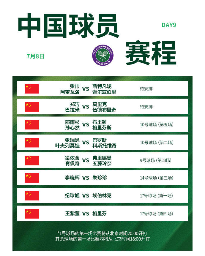 温网第9比赛日看点:张帅冲击混双决赛,萨巴伦卡迎500场里程碑