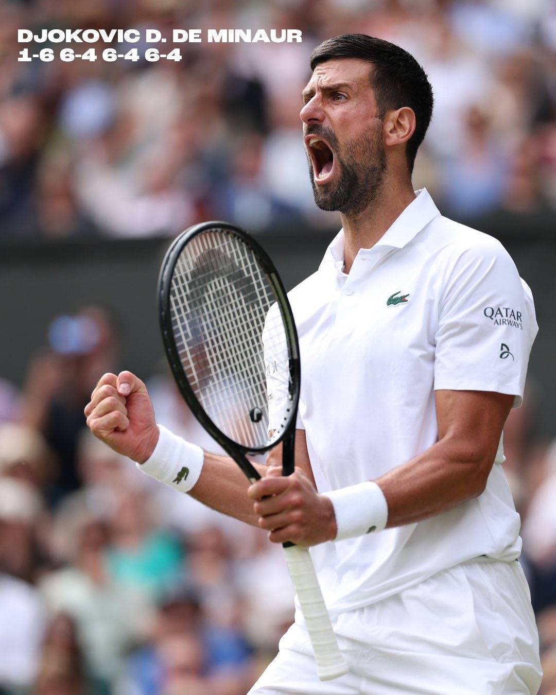 德米纳尔在晋级今年温网第四轮的过程中仅丢一盘。在昨天的比赛中,这位26岁的选手在首盘迅速拿下,但在第二盘4-5落后时错失破发点,德约科维奇关键时刻保发,扳平盘分。塞尔维亚人在底线减少失误,通过左右调动对手取得领先,随后又在第四盘1-4落后时强势反扑,经过3小时18分钟的鏖战逆转晋级。
