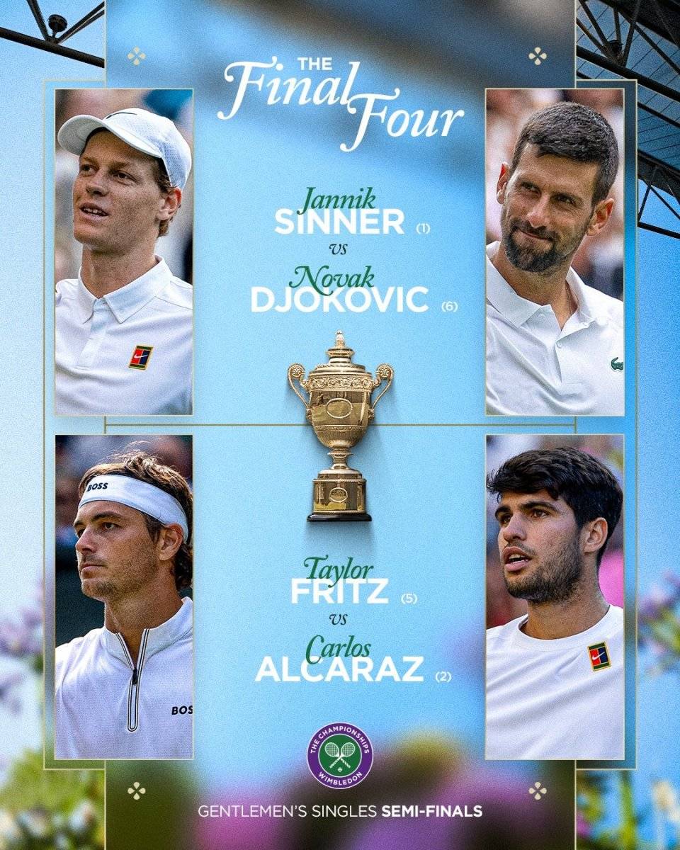 温网男单四强出炉:辛纳阿卡双子星领衔,德约第14次入围创纪录