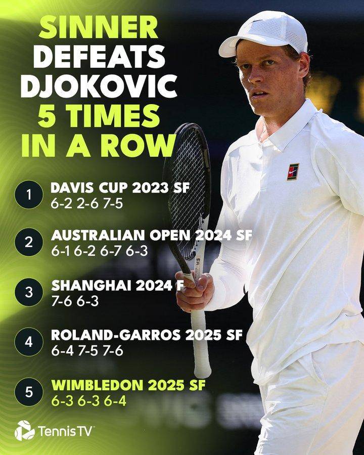 「他就像台精准的机器,」德约科维奇赛后盛赞对手,「年轻一代的球速和体能已超越我们这个世代。」这场胜利让辛纳成为公开赛时代首位闯入温网男单决赛的意大利选手,周日将再度与阿尔卡拉斯重演法网史诗决战。