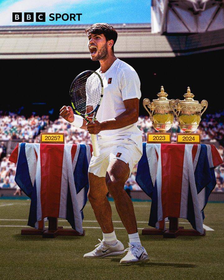 特别在关键第四盘抢七局中,阿卡拉斯更在4比6落后时挽救两个盘末点,连夺4分逆转拿下胜利,距离成为公开赛时代第五位温网三连冠得主仅差一胜。