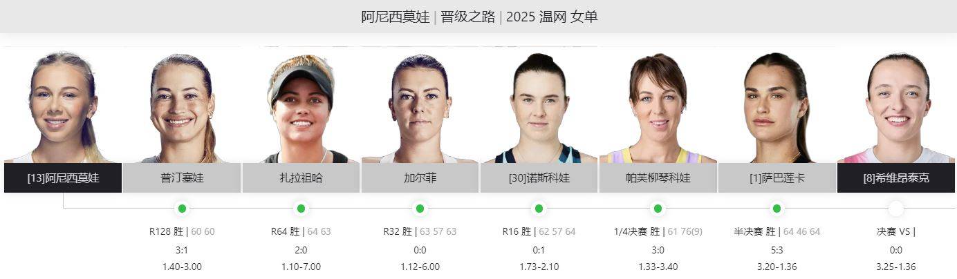 温网女单决赛前瞻:阿尼西莫娃争创励志童话,斯瓦泰克盼王者归来
