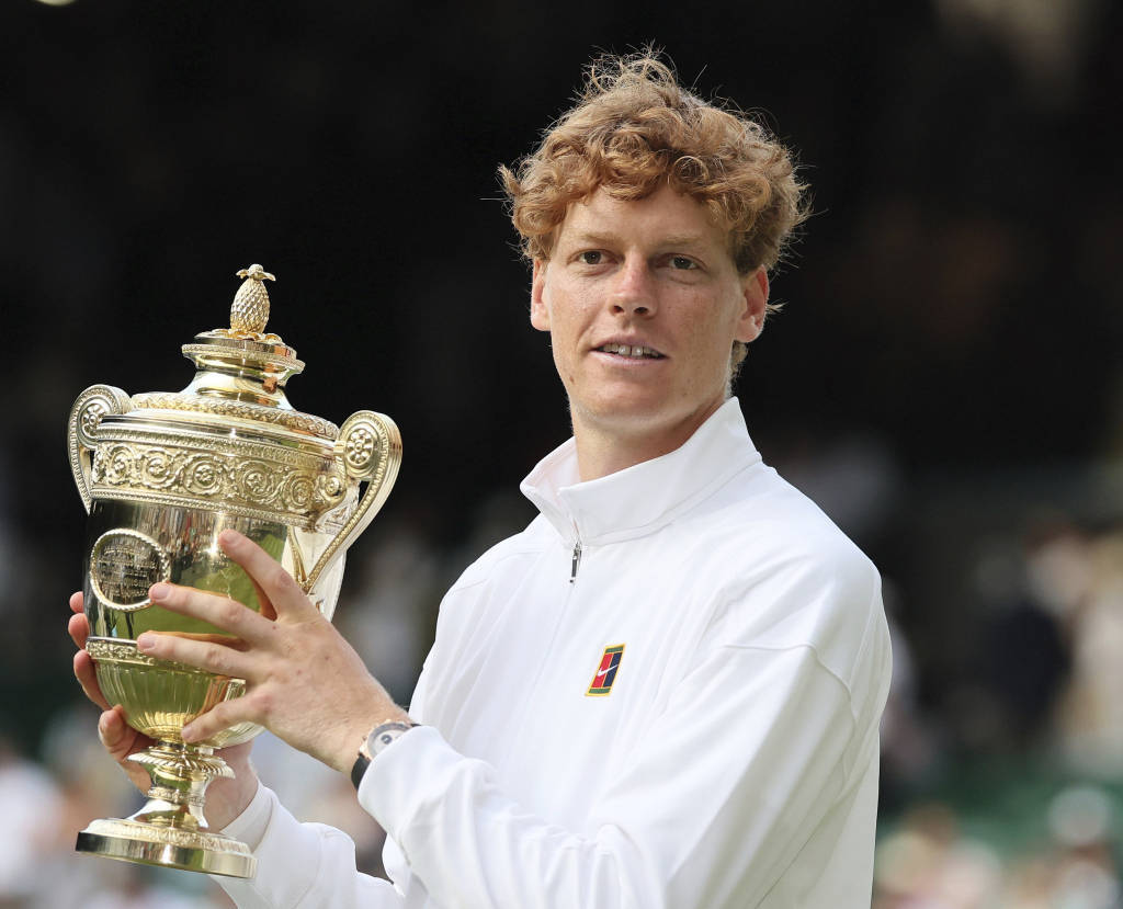 由此,辛纳第一次在温网草地捧起了冠军奖杯,同时也将自己的大满贯冠军数量提升至4个,距离阿尔卡拉斯仅差一个。