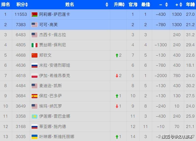 截至6月6日,WTA其他选手的年度奖金情况,萨巴伦卡600万美元、高芙425万美元、凯斯353万、米拉-安德烈娃344万美元、斯瓦泰克327万美元、鲍里妮278万美元等,都比郑钦文高出不少,尤其萨巴伦卡,主要拿下澳网亚军、印第安维尔斯站亚军、迈阿密站冠军、马德里站冠军、闯入法网决赛(至少127.5万欧元)等成绩,如果拿下法网冠军,还会再增加127.5万欧元奖金,超过700万美元,现在已是郑钦文奖金的四倍多了。
