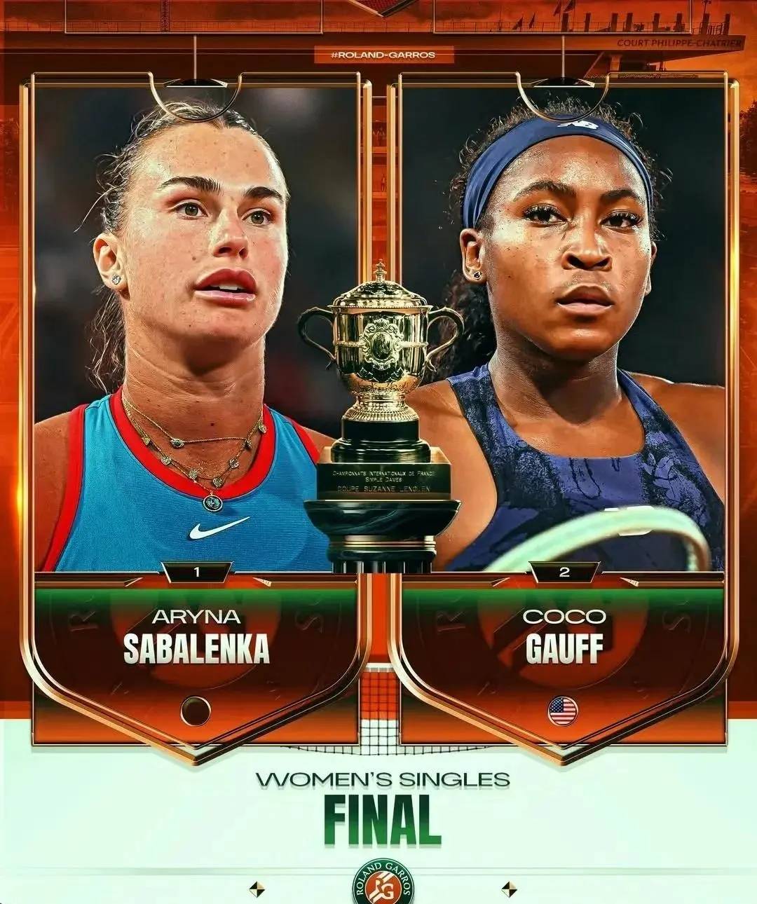 于高芙而言,她要是这次能战胜萨巴伦卡在法网捧杯,将让美国女网结束对法网冠军长达十年的等待,成为美国女子球员在罗兰加洛斯登顶第二人,上一次美国女球员在法网折桂的人是2015年的女皇小威。