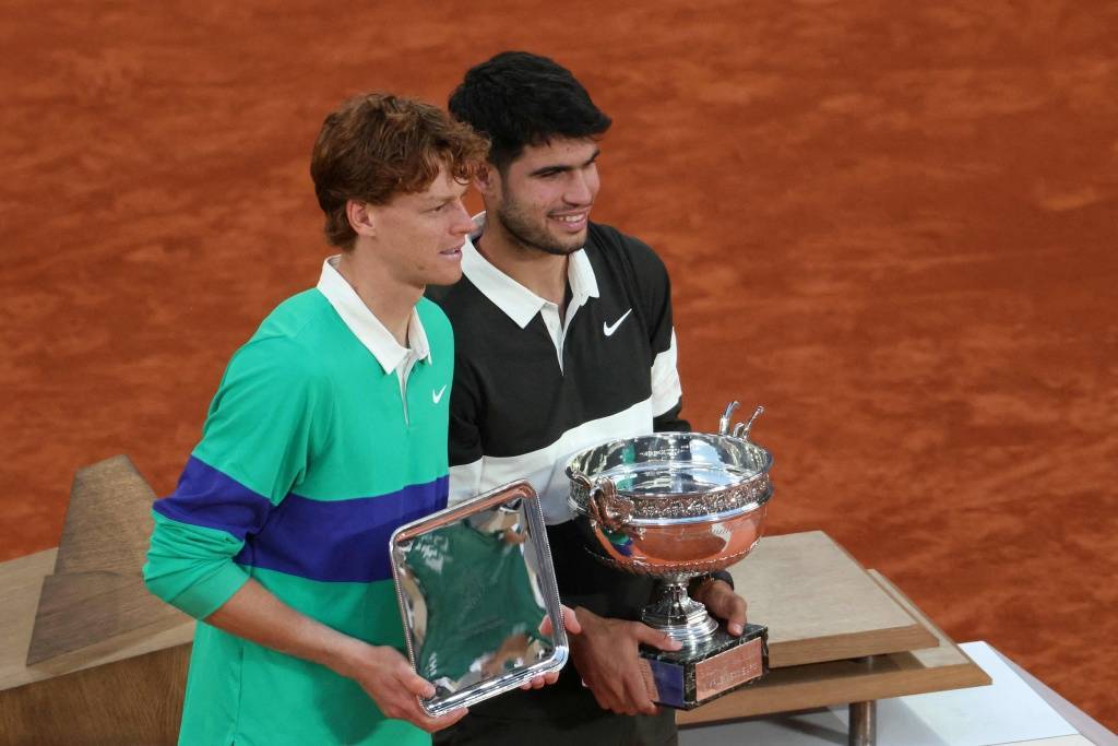 在连续夺得去年美网和今年澳网两个大满贯冠军后,辛纳终于在阿尔卡拉斯面前无缘奖杯,而西班牙人则是在去年温网夺魁后,又一次尝到大满贯冠军的滋味。