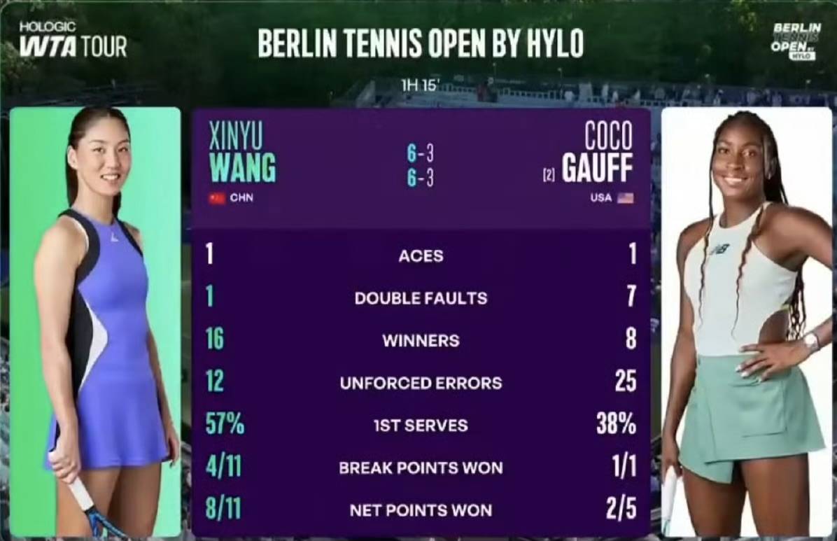 赛前,几乎没人看好王欣瑜。她带着巡回赛三连败的低迷状态来到柏林,而高芙则挟法网夺冠之威,被视为草地赛季的夺冠热门。然而,比赛进程却让所有人大跌眼镜——王欣瑜用一场近乎完美的战术执行,让世界第二全场找不到节奏。