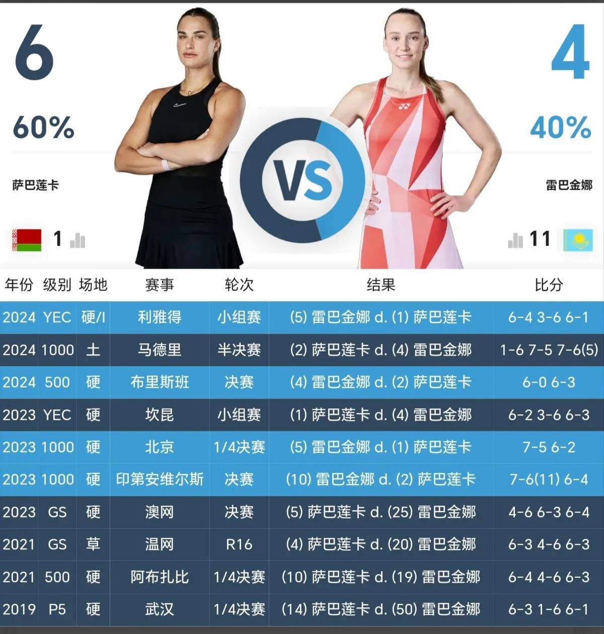 那么相对于莱巴金娜较为单一的一攻到底,萨巴伦卡更像是一位六边形战士,两者的区别就明显地体现了出来了。因此,看似萨巴伦卡这次赢的有些运气,实际她体内的这种必胜信念才是支持到笑到最后的关键所在。不然面对这么大的压力,以及状态极佳的莱巴金娜的强势,换了别人早就撑不住缴械投降了,这就是萨巴伦卡当前战斗力不断升级的可怕之处。
