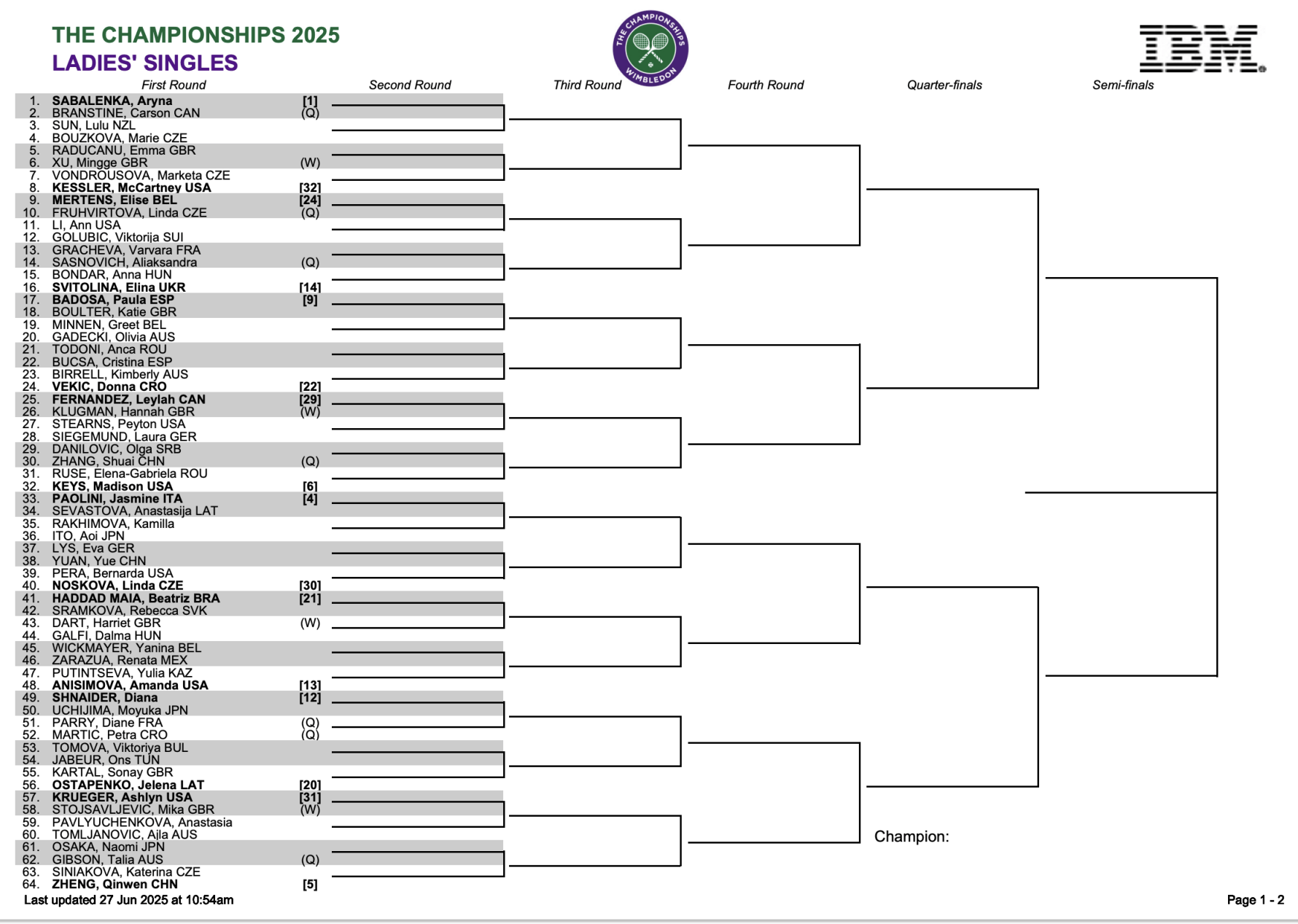 2025温网签表出炉 郑钦文与去年赛会亚军同区