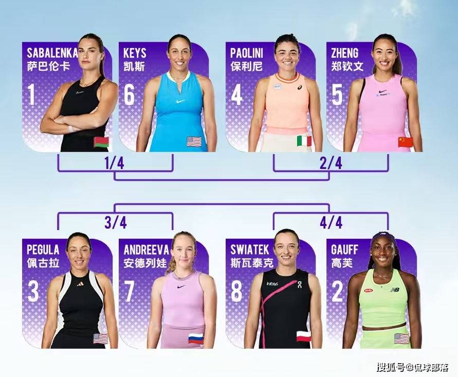 上半区:[1]萨巴伦卡 vs 凯斯[6]、[4]鲍里妮 vs 郑钦文[5]