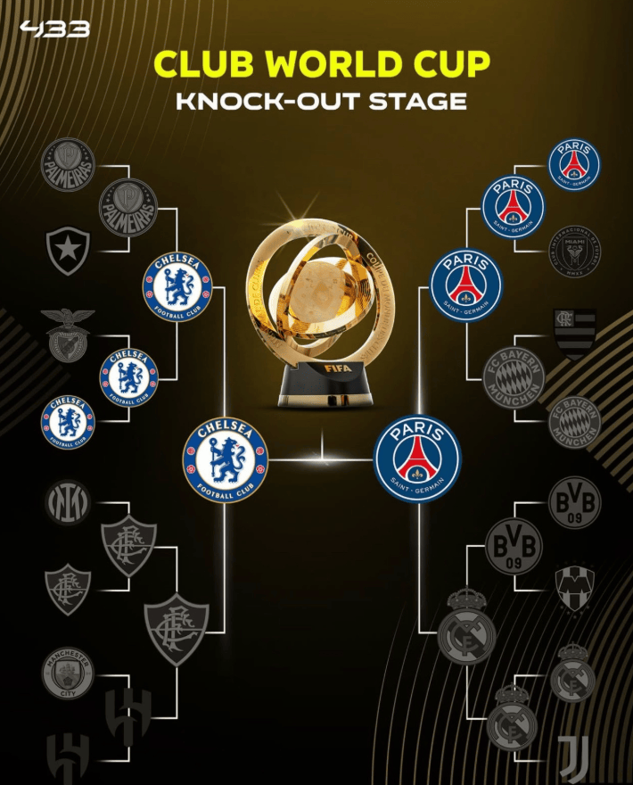 世俱杯决赛,将会是大巴黎对阵切尔西。