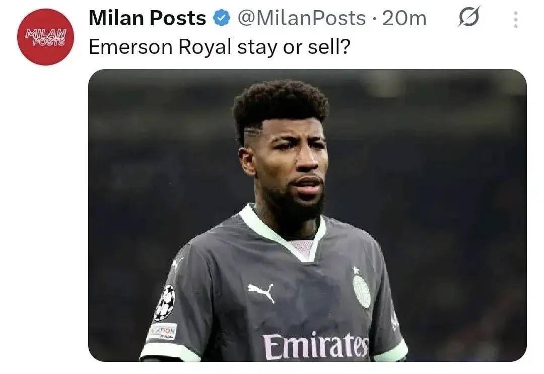 意甲媒体透露:埃摩森想离开米兰!其经纪人表示他希望加盟西甲皇家贝蒂斯