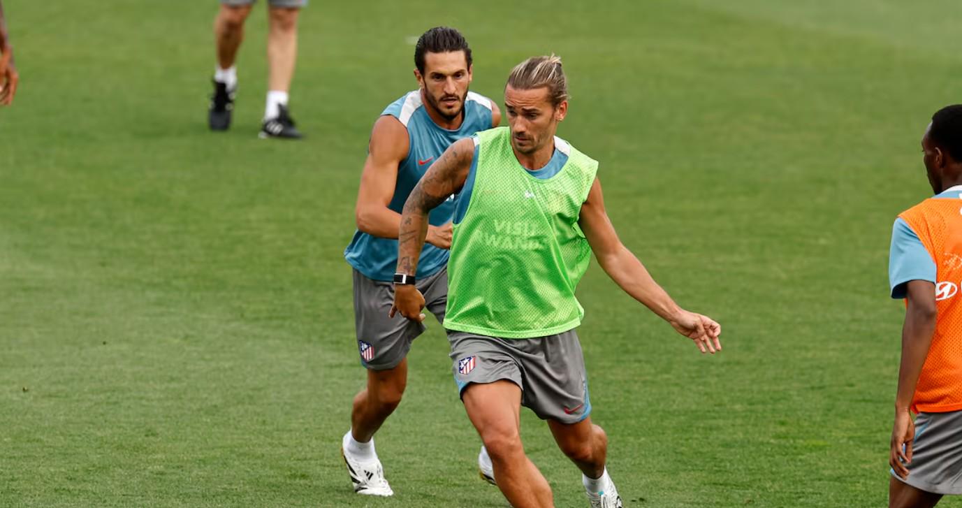 西蒙尼安排了一场与青年队球员的内部比赛。在球场一侧可以看到马科斯-略伦特、维特塞尔、伊利亚斯-科斯蒂斯、阿斯皮利奎塔、里克尔梅、科克、勒马尔、卡洛斯-马丁、格列兹曼和利诺。