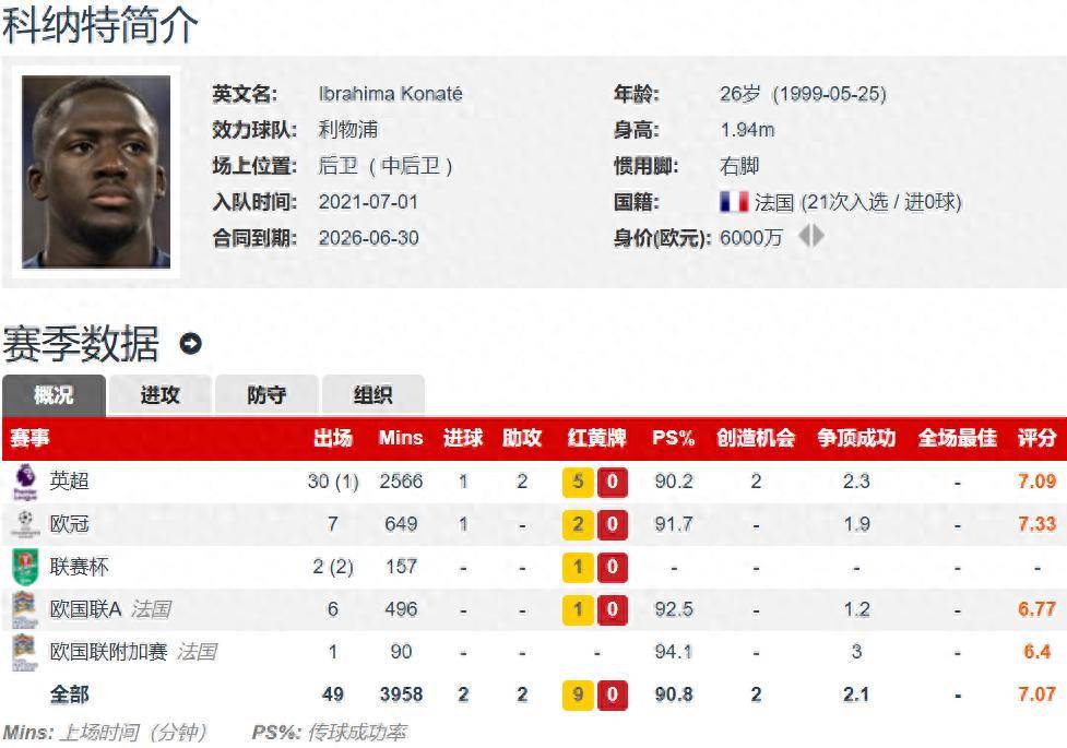 利物浦26岁的荷兰中卫科纳特,最后一年合同,身高1.94米,右脚中卫,德转估价6000万欧元。科纳特已经拒绝与利物浦续约,他会是皇马明年夏窗免签的重点目标。