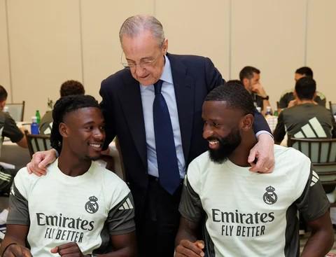 北京时间6月17日,据皇马官方报道,俱乐部主席佛罗伦蒂诺在皇马下榻的酒店问候了球队。
