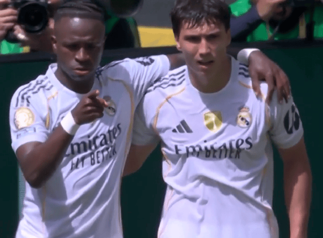 这场比赛,姆巴佩因病缺阵,阿隆索在前场派出了维尼休斯和罗德里戈的组合,中场则有贝林厄姆、楚阿梅尼和巴尔韦德,皇马的阵容依然豪华。