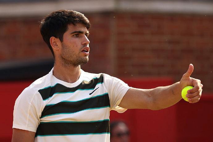 北京时间6月20日,ATP女王杯1/8决赛,头号种子阿尔卡拉斯鏖战三盘险胜同胞穆纳尔,晋级八强。