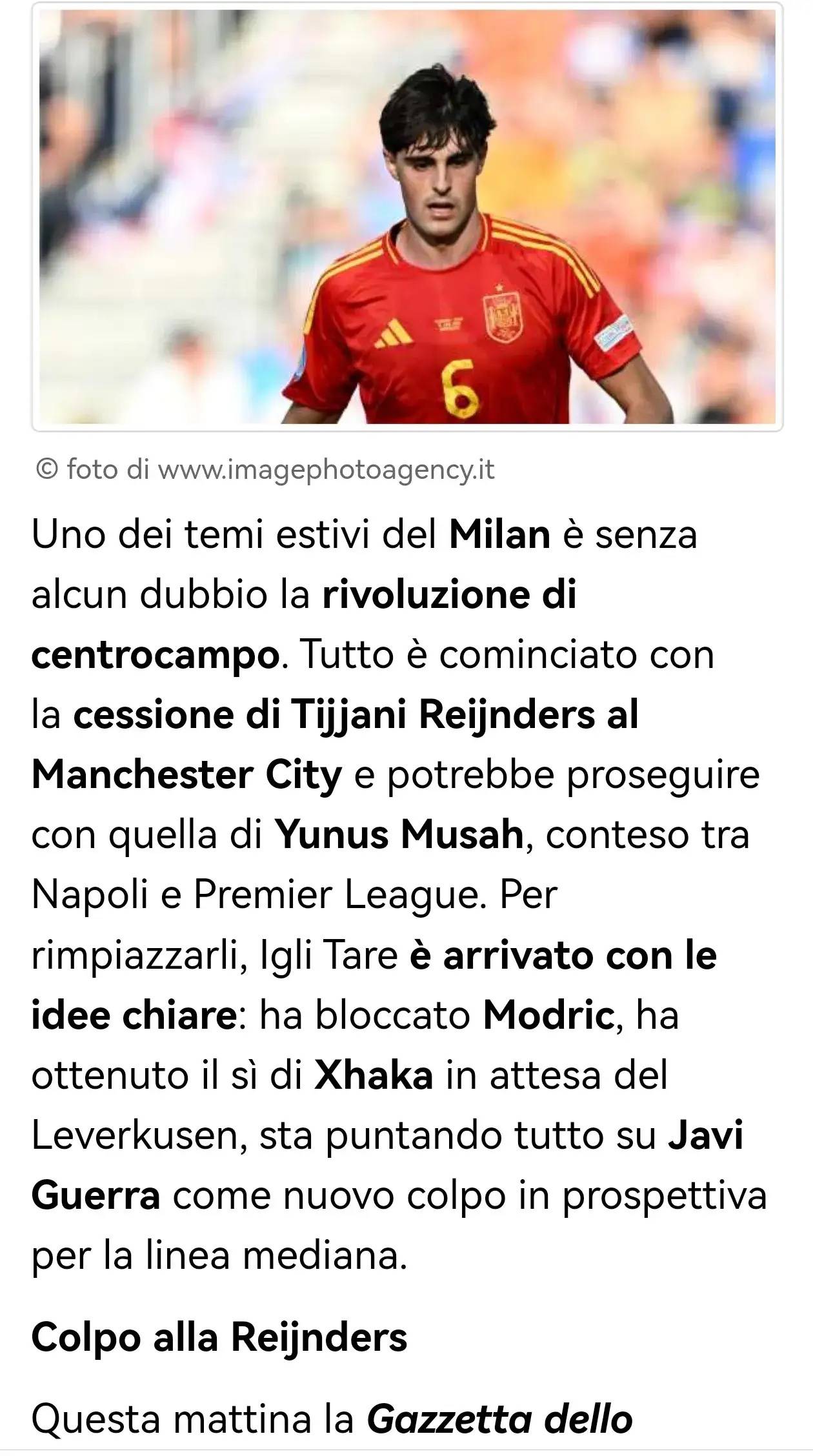 毫无疑问,米兰今夏的核心议题之一是中场革新。这一切始于蒂贾尼·赖恩德斯转会曼城,而尤努斯·穆萨在那不勒斯与英超球队的争夺中也可能离队。