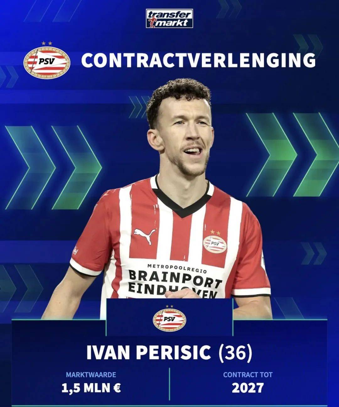 罗马诺表示,佩里西奇与埃因霍温签下两年新约,Here we go!周四达成口头协议后,双方今日正式完成签约。尽管巴萨等多家俱乐部抛出橄榄枝,克罗地亚国脚仍决定留队效力至2027年6月。
