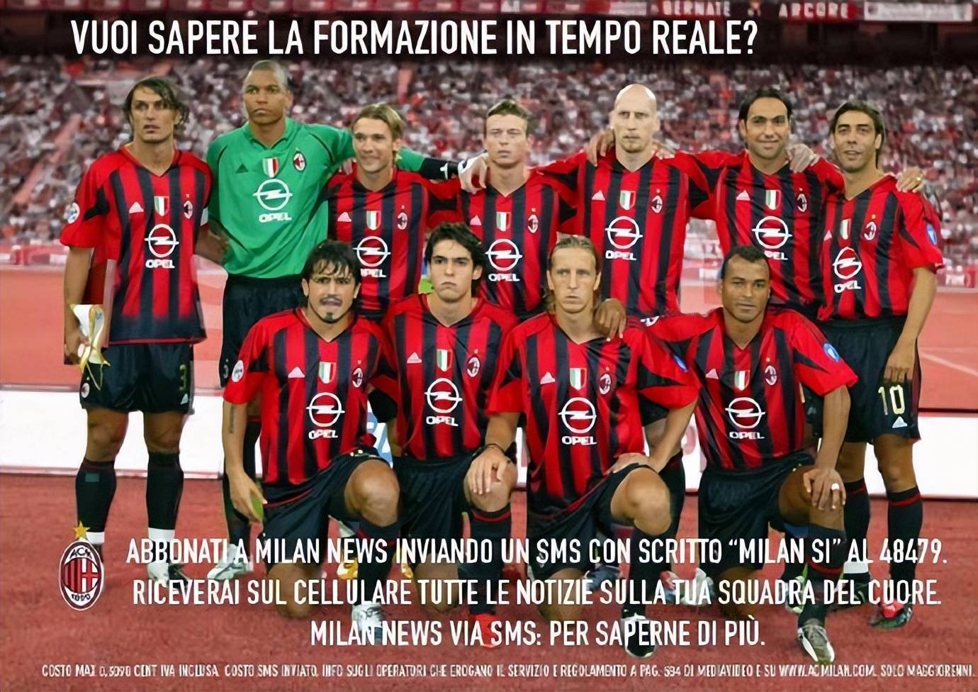 AC米兰:迪达,卡福Cafu,内斯塔,斯塔姆Stam,马尔蒂尼,加图索,鲁伊科斯塔,安布罗西尼(77’多拉苏Dhorasoo),卡卡,舍甫琴科,托马森(75’克雷斯波Crespo,83’塞尔吉尼奥)。主帅:安切洛蒂