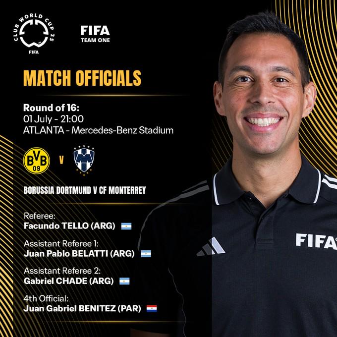 官方消息,阿根廷裁判法昆多-特略将执法世俱杯1/8决赛多特蒙德vs蒙特雷。