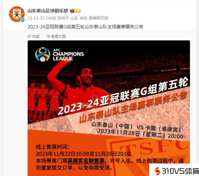 下午14点!山东泰山队官宣音讯,亚冠主场门票开售,费莱尼是主角