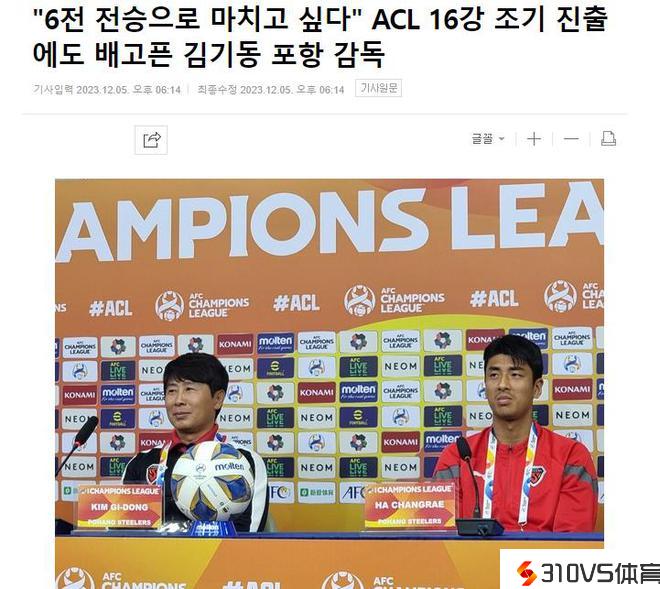 浦项主帅:明天对阵武汉三镇将轮换,我们要以6连胜晋级淘汰赛