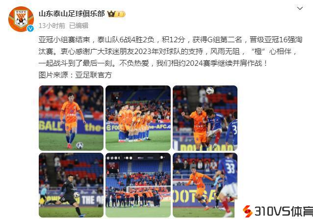 此役竞赛完毕之后,泰山队也完毕了本赛季一切赛程,俱乐部也官宣最新静态以及未来新决议,俱乐部发文表示:亚冠小组赛完毕,泰山队6战4胜2负,积12分,取得G组第二名,晋级亚冠16强淘汰赛。衷心感谢广阔球迷冤家2023年对球队的支持,风雨无阻,“橙”心相伴,一同战役到了最后一刻。不负热爱,我们相约2024赛季继续并肩作战!
