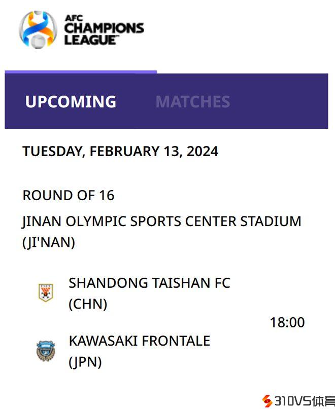 山东泰山与川崎前锋的亚冠1/8决赛采取主客场两回合赛制,山东泰山队先主后客,两场竞赛区分于2月13日(农历正月初四)和2月20日(农历正月十一)停止,其中泰山队首回合主场的竞赛是一切1/8决赛中最先末尾的一场。