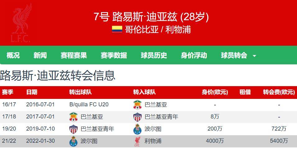 迪亚斯现年28岁,身高1.80米,右脚左边锋,与利物浦的合同至2027年,德转估价7000万欧元。迪亚斯上赛季各项赛事共为利物浦出场50次,其中38次首发,贡献17球6助。