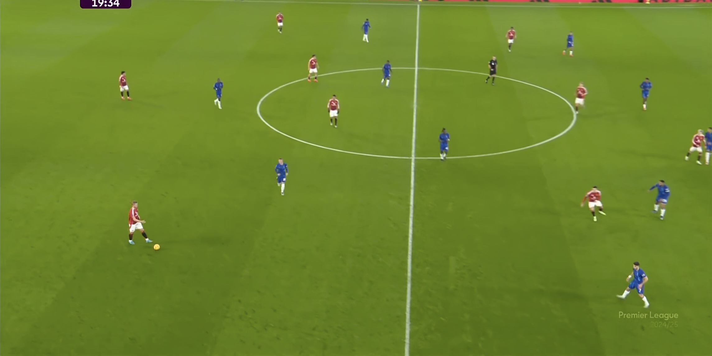 平切尔西的上半场,范尼演练了一段时间三后卫 有时利马收进左中卫,有时达洛特收进右中卫,轮转不同但站位很清楚。甚至还有边锋收进肋部回接,典型的阿莫里姆体系。 那段时间,曼联节奏没有因为变阵而受影响。阿莫里姆当然会看这场比赛,也会看到范尼对战术的理解。 范尼还有两场,可以看看他会不会积极演练新帅体系,哪些球员又在新站位里发挥出色/不佳,尤其后者特别值得关注。