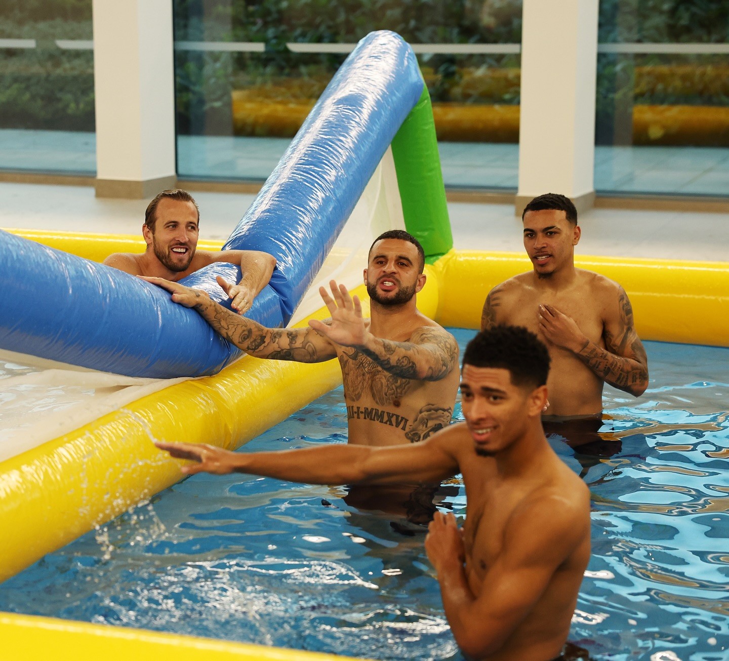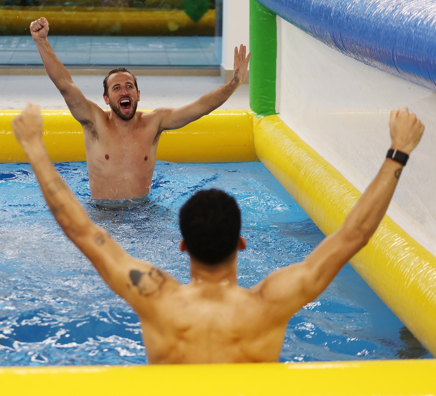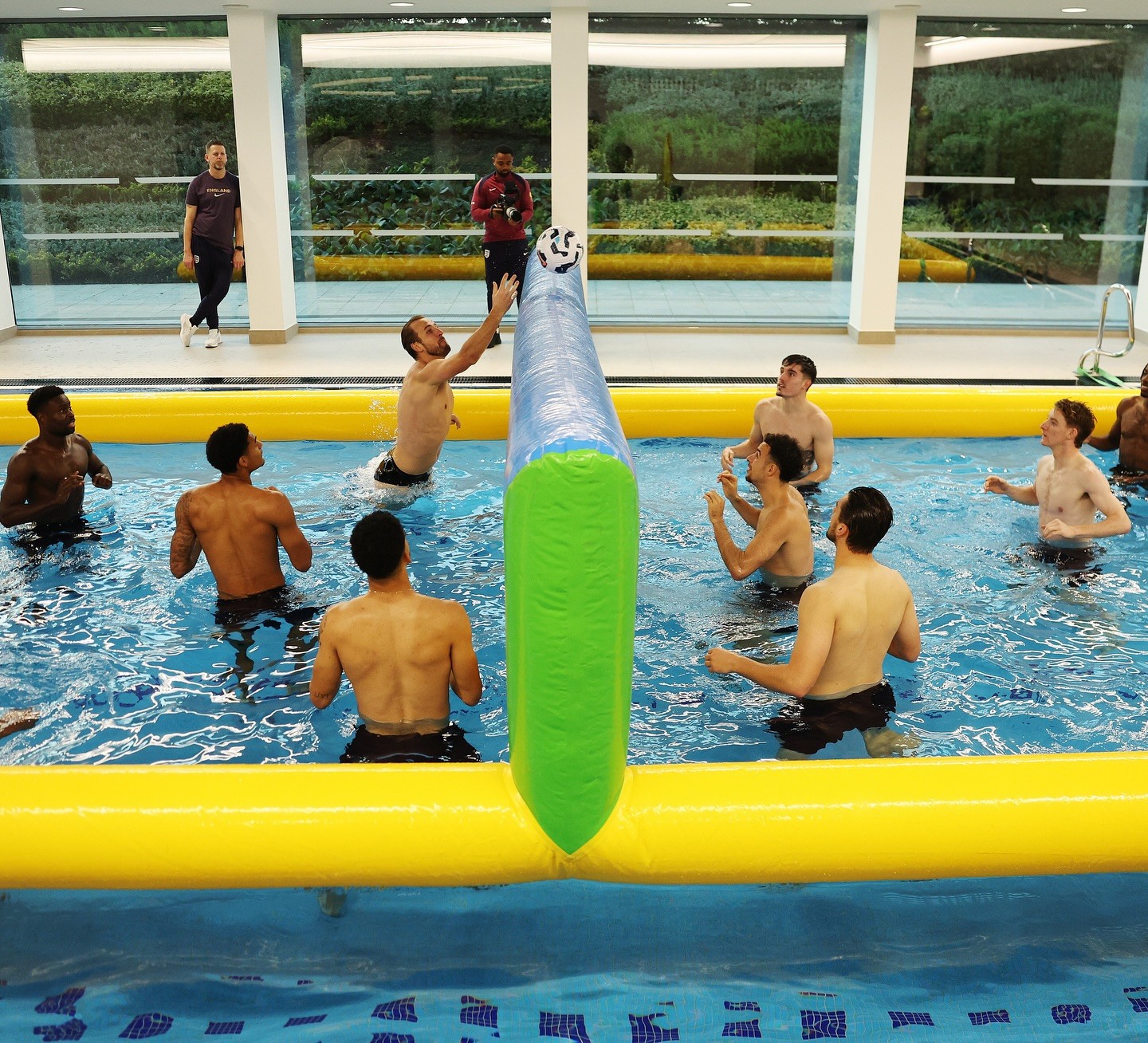 本周五,凯恩在社交媒体晒出英格兰队内进行水上排球比赛的照片,凯恩所在的小分队击败了沃克带领的小分队。