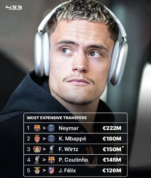 所以将维尔茨转会费放在历史第三有点超前了,不过高于菲利克斯的1.26亿欧元应该是大概率。