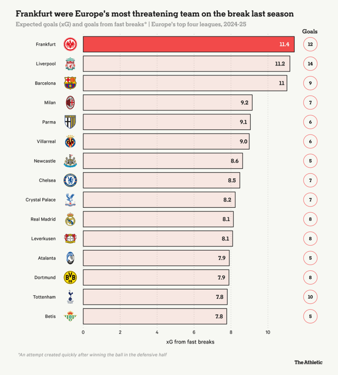 随后的夏窗,法兰克福选择将他买断,他在锋线上与马尔穆什配合出色,尤其在快速反击之中。在上个赛季的欧洲四大联赛中,没有一支球队比迪诺·托普穆勒的法兰克福创造更多的快攻预期进球,埃基蒂克功不可没。
