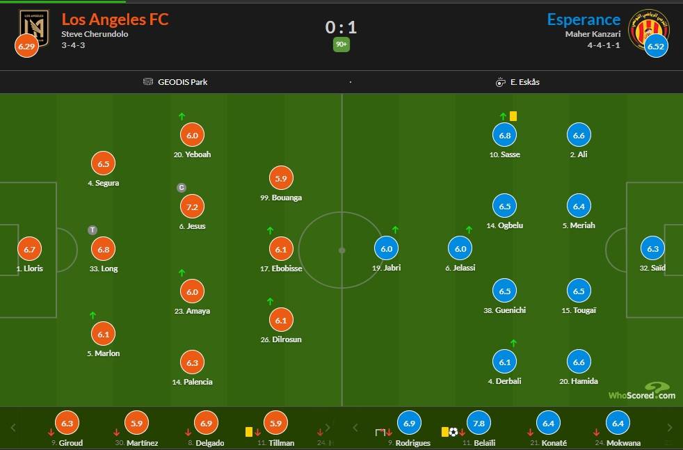 本场比赛洛杉矶FC上半场2粒进球,都因为越位在先被取消,下半场贝莱利打入全场唯一进球,帮助突尼斯希望1-0笑到了最后,随着终场哨声的响起,前两轮全败的洛杉矶FC已经提前出局,而突尼斯希望末轮将会和切尔西直接对话,获胜的一方将能够携手弗拉门戈晋级。