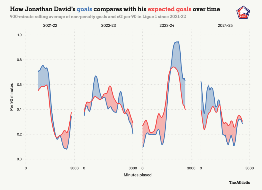 戴维拥有稳定的得分能力,他在法甲的4个赛季,场均进球都高于预期进球。他擅长抓空档和反击,也能在门前抢点。而且,他还能担任左边锋或者10号位,配合能力很好。用曼联熟悉的球员对比,他就是不懒的马夏尔。不过,戴维不擅长背对球门踢球。