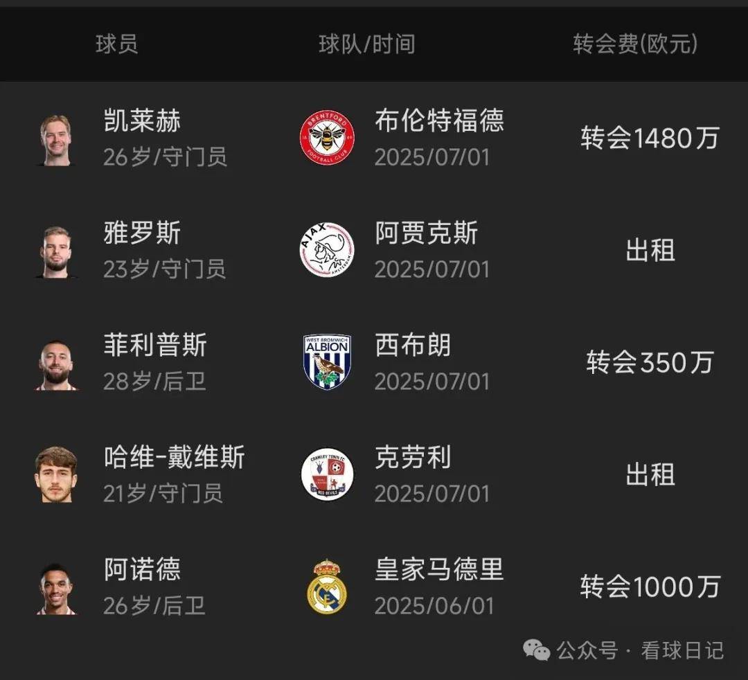已官宣离队的户口本球员包括: 凯莱赫、雅罗斯、菲利普斯、哈维-戴维斯以及阿诺。