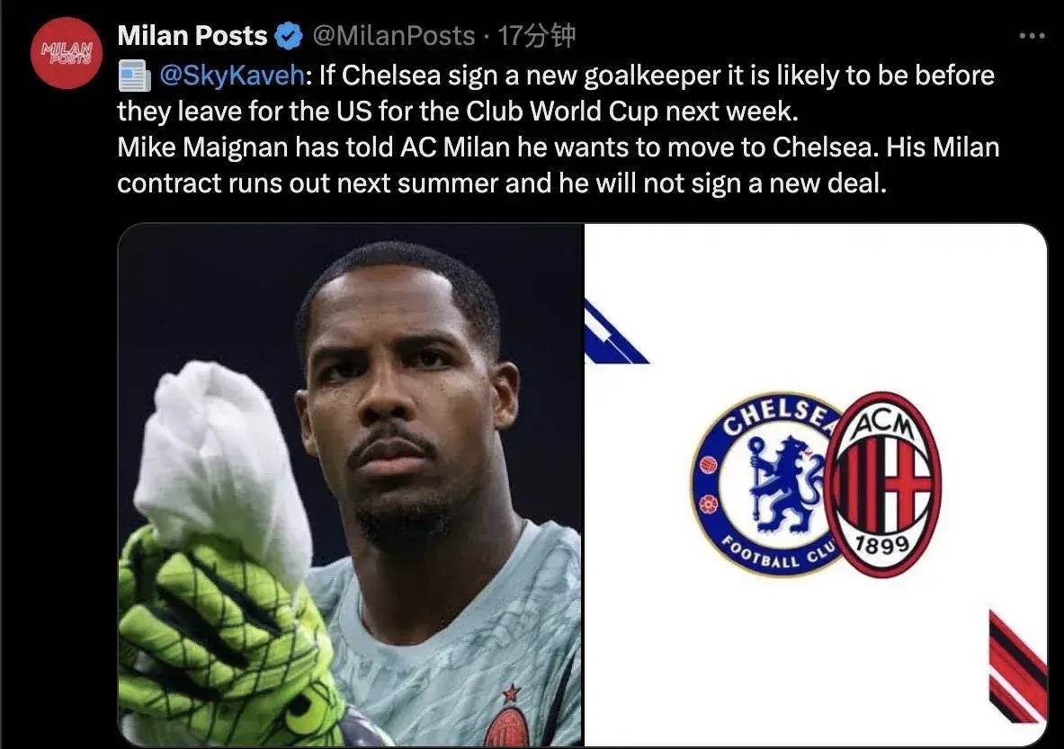 意甲媒体透露:迈尼昂向米兰施压!表示不会续约,希望转会到切尔西