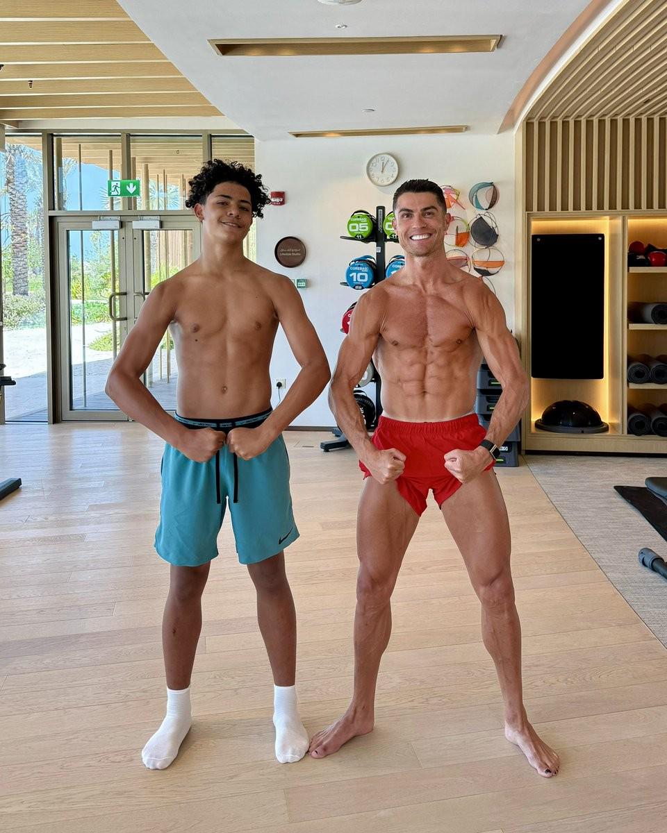 快一样高了!C罗晒与迷你罗秀肌肉照:有其父必有其子