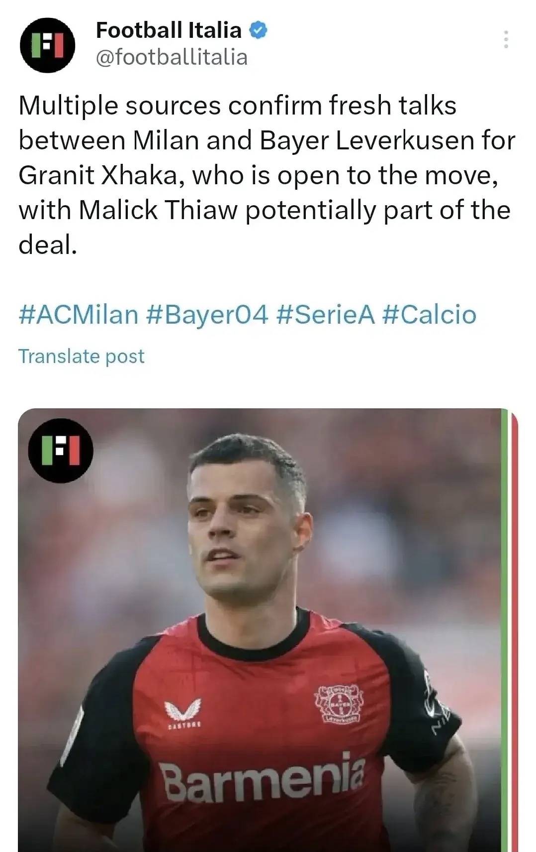 意甲媒体透露:米兰与勒沃库森的谈判最新策略为帝奥交换扎卡,勒沃库森还在评估