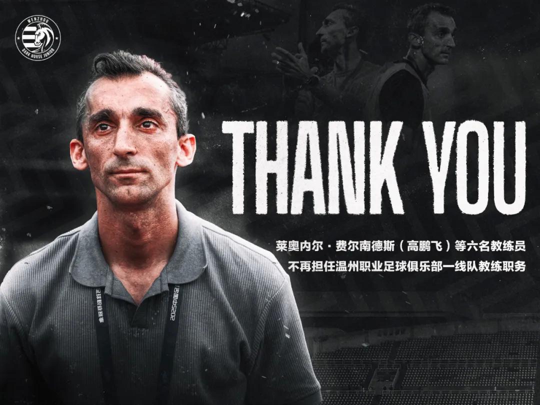 北京时间7月3日,温州职业足球俱乐部官方宣布,莱奥内尔-费尔南德斯等六名教练员不再担任俱乐部一线队教练职务。