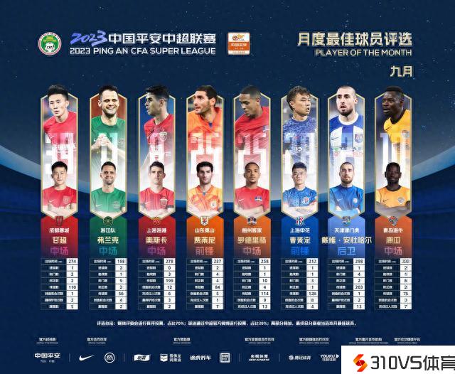 中超9月最佳球员评选:奥斯卡PK费莱尼,甘超、曹赟定中选