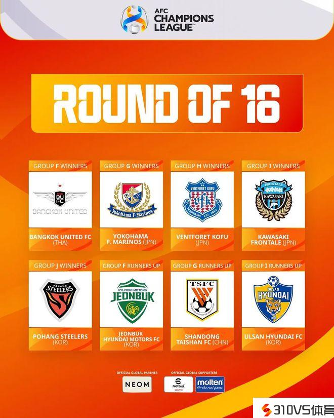 亚冠16强出炉:日韩皆三队晋级 泰山队中超独苗