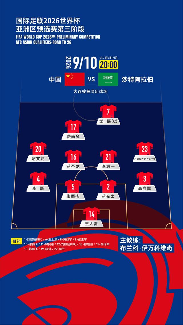 本场比赛伊万排出442菱形中场的阵型,黄政宇任单后腰。