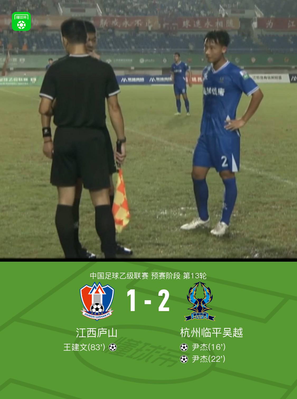 江西庐山1-2杭州临平吴越,王建文破门,尹杰双响建功